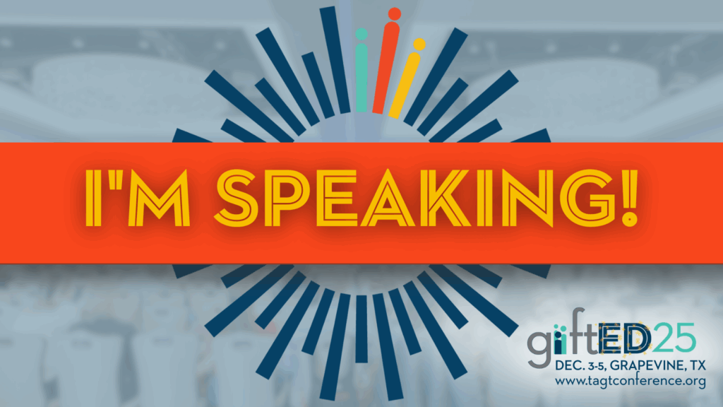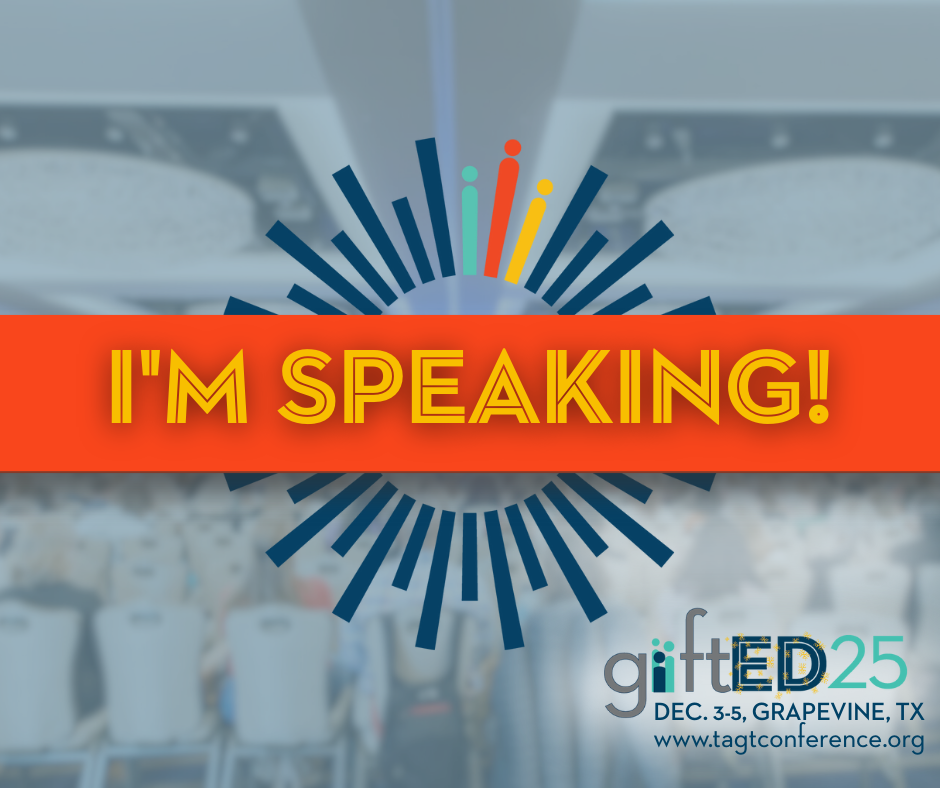- I’m presenting at #giftED25! Join me Dec. 3-5 in Grapevine, TX, to discover new ways you can serve the needs of your gifted students at my session on ENTER DETAILS. @txgifted #tagt https://tagtconference.txgifted.org